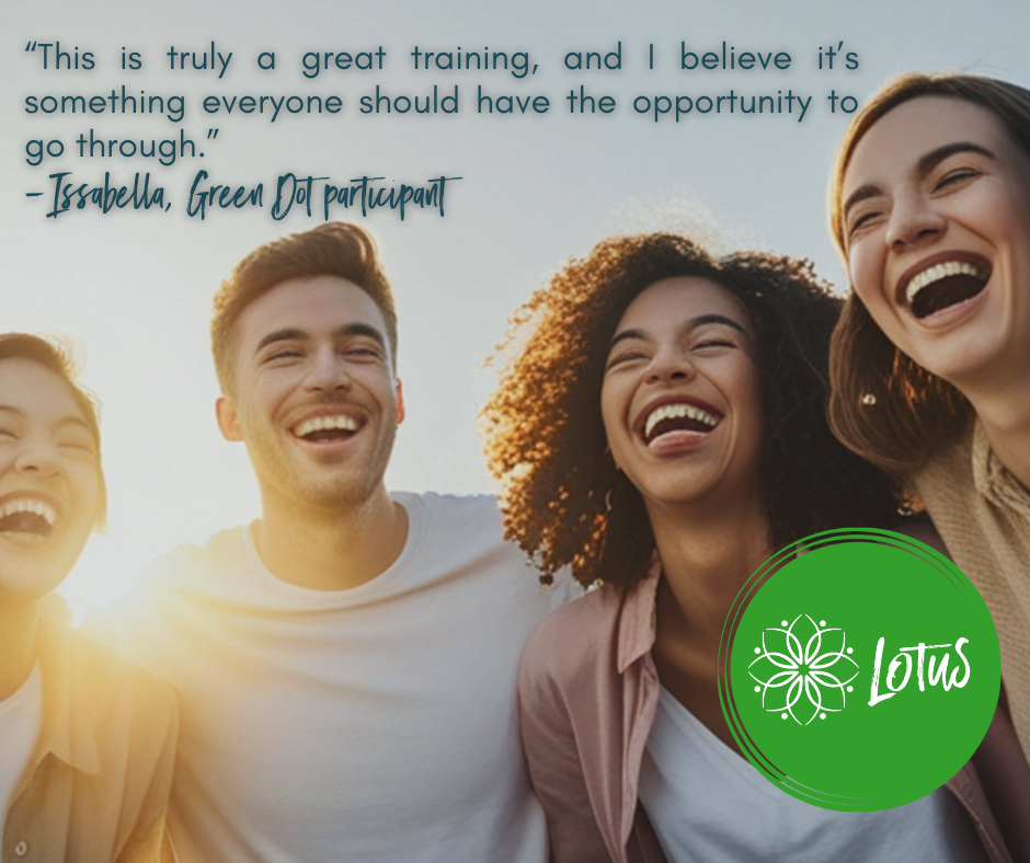 A strong community is a safer community. At Lotus, one of the ways we work toward safety and connection is through the Green Dot program.